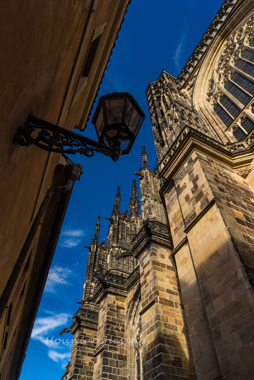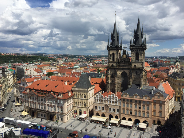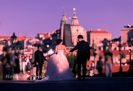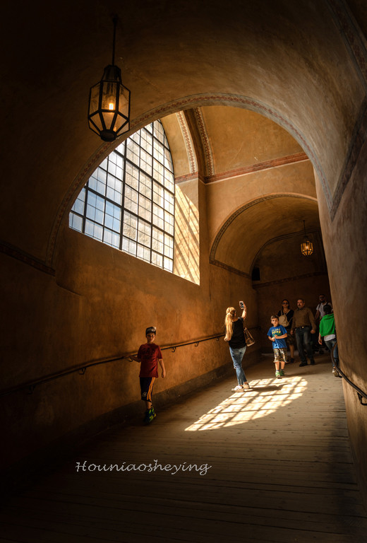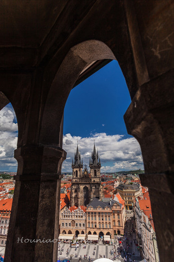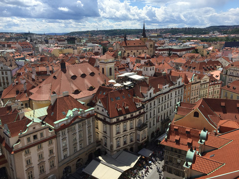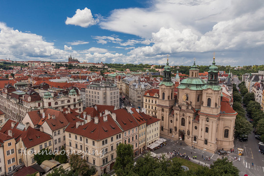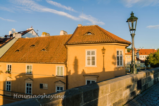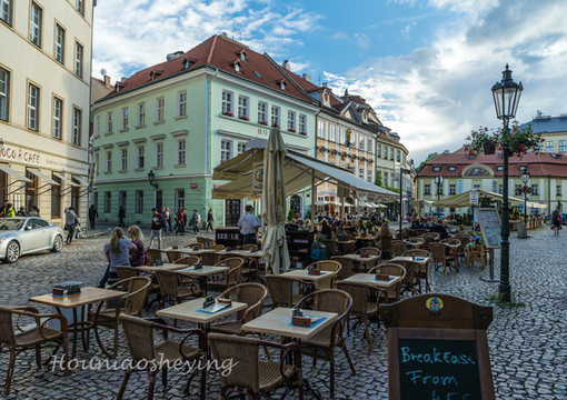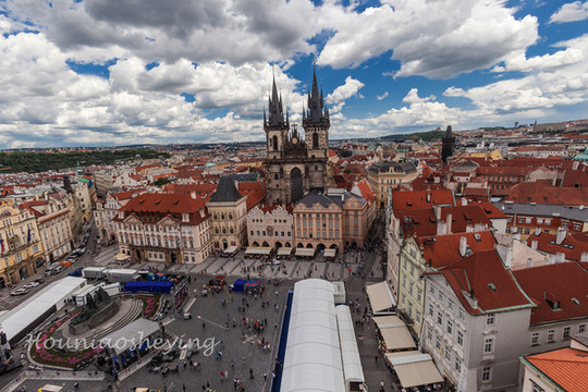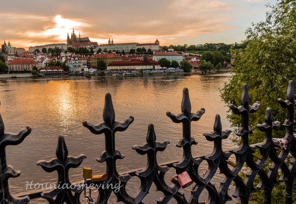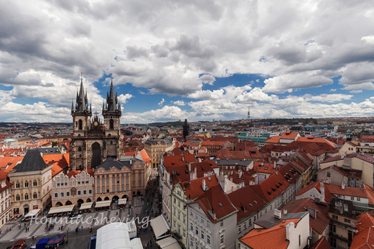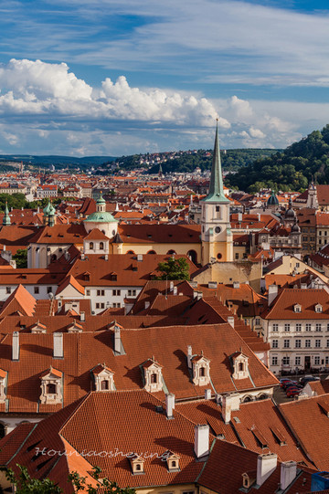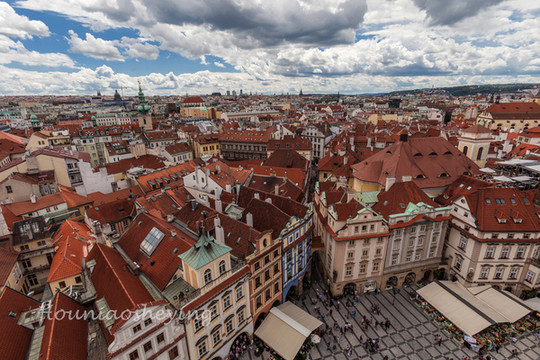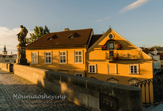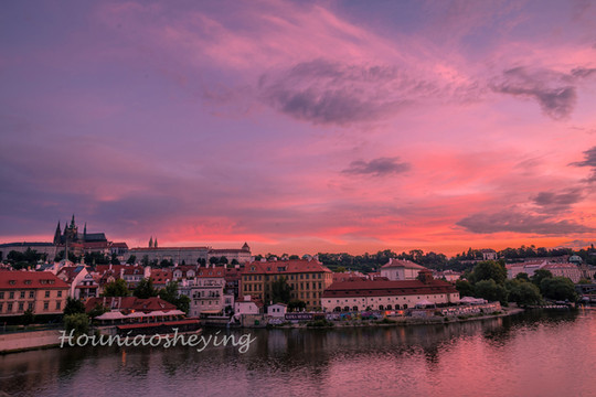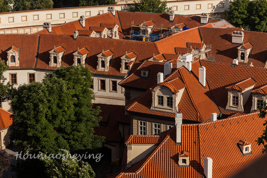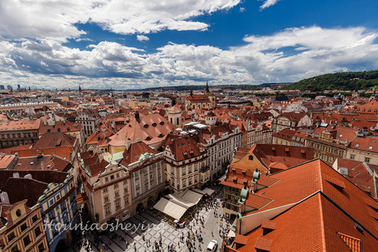 D10:(16日)早上5点出发,爬到酒店对面的山上拍日出。当初阳照在红顶黄墙的小镇建筑上,小镇沉浸在一片靓丽的晨光之下。克鲁姆洛夫小镇被宽阔蜿蜒的伏尔塔瓦河环抱着,在河谷的对岸以城堡为中心的中世纪城市一望无边。登上古堡最高城塔整个小镇就在眼下,河岸四周的房屋,一律用橙黄色的屋瓦,屋顶曲线轻轻舒展,错落有致,中间便是高耸的教堂。这是一个充分展示色彩搭配的小镇,让你眼花缭乱令人惊叹。中午在小镇用餐,下午小镇继续拍片休闲。晚上8点包车到捷克首都布拉格。