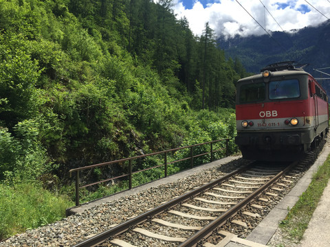 D8:(14日)今天由萨尔茨堡到哈尔施塔特小镇。又是乘坐高铁。8:30到车站乘坐10:12分的火车,我们问好了上车的站台就比较从容等车了。哈尔施塔特小镇没有直达列车,中途要转车才能到达哈尔施塔特,转车时间只有13分钟,又因起始列车晚点几分,转车时又出现百米赛跑场面。先要从上趟列车下来,沿着站台下扶梯,通过下通道再坐上扶梯到隔道站台,由于事前有准备冲刺的效果是明显的,开车之前全都安然坐在了列车座位上。坐欧铁还是很享受的,车厢干净舒适安静、乘客少不限定座位、运行安全是自助式旅游的首选方式之一。