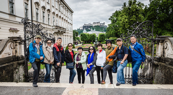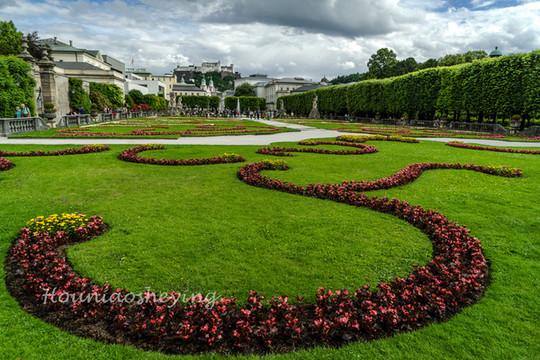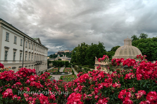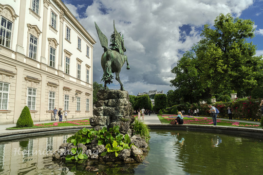 入住酒店后下午4:30分去酒店附近的米拉贝尔宫拍摄。米拉贝尔宫具有晚期文艺复兴风格的宫殿,如今已成为萨尔茨堡市政厅。因电影《音乐之声》在这里拍摄,米拉贝尔宫因此而成为世界各地游客来萨尓茨堡必到之处。米拉贝尔宫门前的花园是玛丽亚带孩子们唱歌的拍摄地,大家操起相机变换着不同的角度对米拉贝尔宫及花园一阵狂拍。