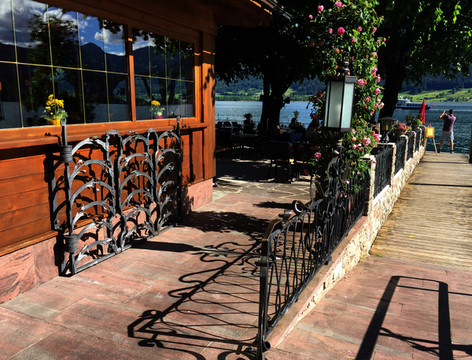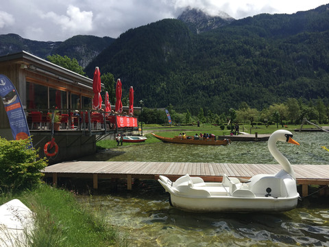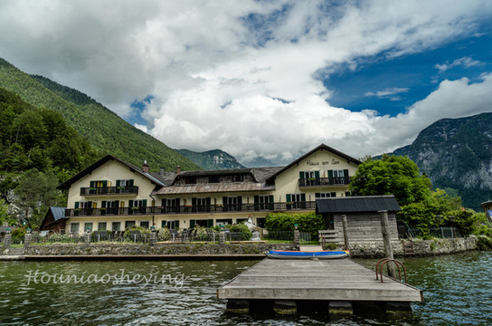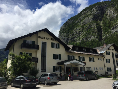 两个小时后12:45分我们在哈尔施塔特小站下了高铁。下了车却傻眼了,车站外没有陆上交通,只有一个湖边小码头,可坐船到湖对岸的哈尔施塔特小镇,而我们预定的酒店离小镇有十几公里。与酒店联系酒店同意派车在下一站来接我们(10欧元),于是又在小站等了20多分钟,大家才乘坐下一趟欧铁(3分钟车程),半小时后终于来到了酒店。这个酒店叫湖畔之家酒店,是个私营酒店,客房紧临湖边,是个休闲放松的好地方。小镇一年四季的游人不少,特别是近几年的中国游客逐渐增多,但都是跟着旅游团在此呆几个小时就离开,根本不能坐下来品味小镇的精致。还是自由行惬意,虽然累点辛苦点,但游的从容超值!