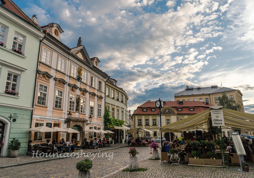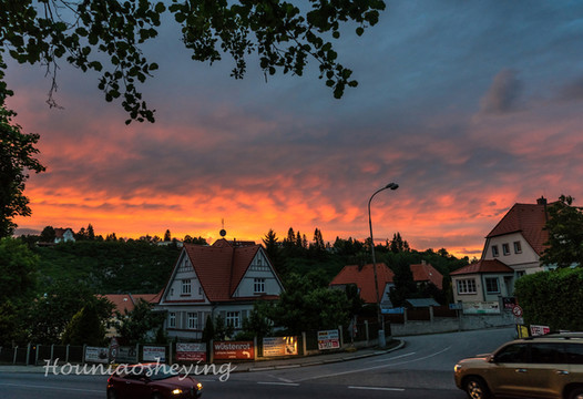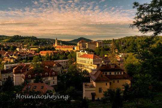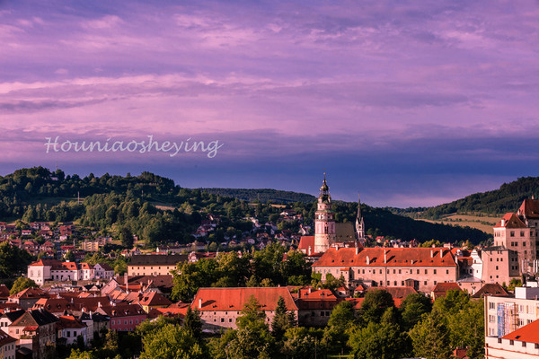 6点从圣沃夫冈出发,8点多到达克鲁姆洛夫小镇。一到小镇大家就被美丽的晚霞吸引,放下行李操起相机赶紧抓拍了几张。为赶时间今晚的晚餐自行就在车上解决了。晚上几人一起去小镇拍夜景,老城此时安静有加,但夜景却不尽人意。