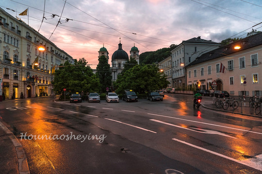 D7:(13日)入住的这家酒店没有含早,昨晚在附近超市买好了早餐自己解决。9点先去米拉贝尔宫继续拍摄。然后又步行去,侬山修道院是阿尔卑斯北部山区最古老的女修道院。从公元714建成一直保存到现在。《音乐之声》电影修女玛丽亚曾在这里住过。看了侬山修道院又坐缆车来到萨尔茨堡的最高处----霍享萨尔茨堡,参观城堡拍摄萨城全景。萨尔茨堡是奥地利镶嵌在欧洲大地上的一颗明珠,而霍享萨尔茨堡就是萨尔茨堡的名片。此堡从1077年开始建造,1861年完成。登上霍享萨尔茨堡360度鸟瞰全城,草坪、森林、巴洛克和哥德式建筑尽收眼底,养眼爽心。真得感叹生活在这里的人们好有福份。那大教堂门厅前优扬的琴声,那小巷中女子煲电话粥的窃窃私语,那树阴下好友相聚的品咖时刻,不正是生活在小镇的人们对生活的一种态度和默契。下山后已近中午,大家在粮食大街找到一个传统的奥地利餐厅Zipfer品吃传统的奥地利餐。特别点了餐厅悬挂在吊灯上的样品面包圈。饭后坐25路公交车(14站)到海尔布伦宫。海尔布伦宫建于17世纪,是当时大教主的厦宫。其精心的设计和园内各种喷泉独具匠心,是阿尔卑斯山以北最美的建筑代表。到达海尔布伦宫天空下起了大雨,我们只好躲进了宫内参观。在返回酒店的路上雨停了,我与晓遥半路下车沿途拍摄雨后的萨城风光。晚上天边出现了晚霞我又一人上街拍摄到10点。