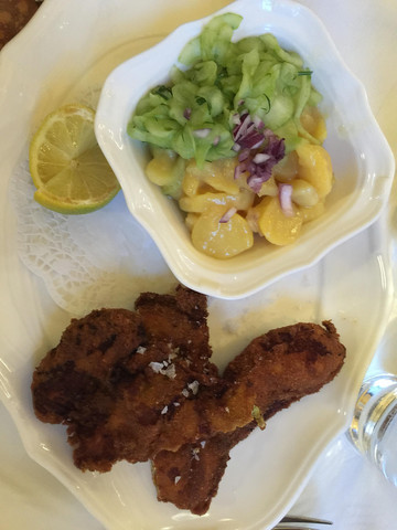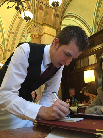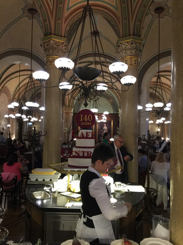 维也纳中餐简单,晩餐讲究。中餐每人每顿按10欧元(72元人民币)晚餐每顿15欧元(108元人民币)