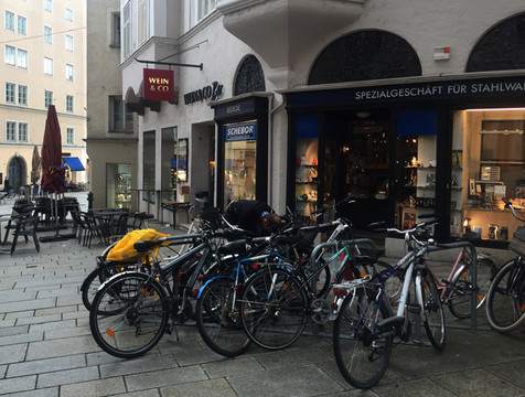 六月的萨尔茨堡天气就像小孩的脸说变就变,一会儿乌云笼罩下起了倾盆大雨,为避雨我们躲进了街边一冰淇淋店,品尝着萨尔茨堡美味的冰淇淋,欣赏着老天送来的见面礼,心情一阵爽快。晚上去粮食大街逛逛,粮食大街是萨尓茨堡一条购物街,有不少的店铺和餐馆,晚餐就在街上的一家中国人开的中餐馆用餐。