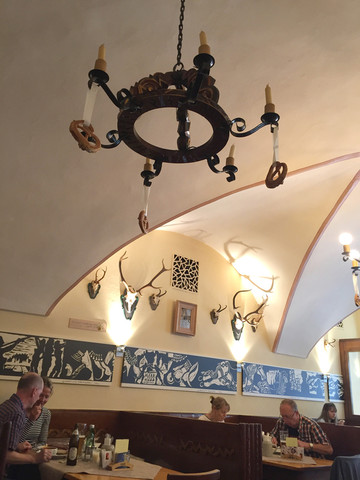 Zipfer传统的奥地利餐厅悬挂在吊灯上的样品面包圈味道好极了 iphon6拍摄