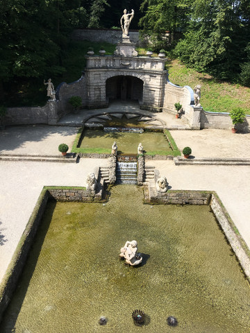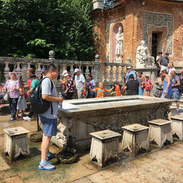 Sittikus)的夏季行宫,此人出身低微,是个人奋斗的典范,成为主教之后在水源丰富的海尔布伦山(Hellbrunnberg)下造了一个以喷泉为主题的宫殿,消暑、取乐。讲实话我就是看到“取乐”这个环节才决定来看看的,果然不虚此行,集体乐翻天。