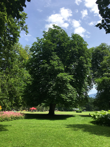 下得山来,亮泉宫的大花园里随便逛逛,找处树荫下的长椅,吃着我们早上买的面包、水果,闻着草香,我们五个一致觉得这个“捡来”的景点,真是棒啊!