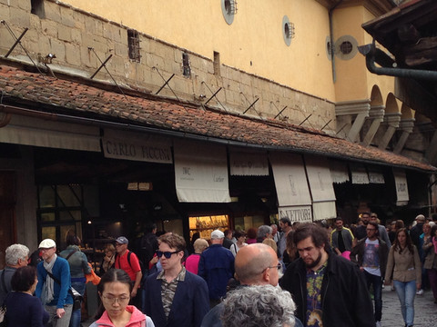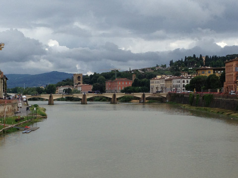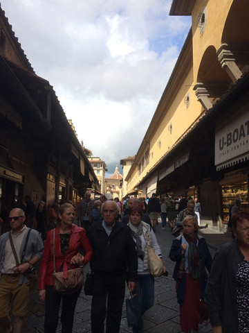 按照房东的建议,我们没有直接开车,直接乘有轨电车进入老城区,佛罗伦萨刚刚醒来,街上人还很少,步行几分钟就到已有700年历史的老桥。