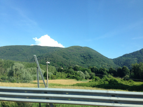 一路穿行在亚平宁山脉,弯道接着弯道,山下便是一块块小平坝,景象如此熟悉,不禁有一种在国内开车的感觉,这一段因乘机太累没有照片。