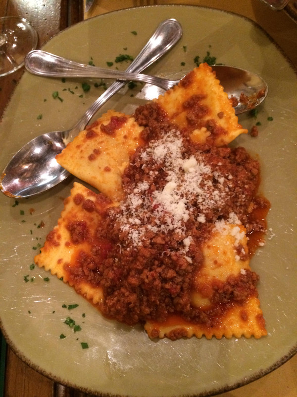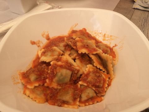 意大利饺子,浇上番茄酱肉末