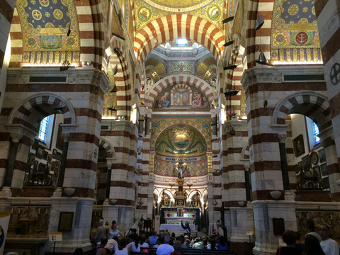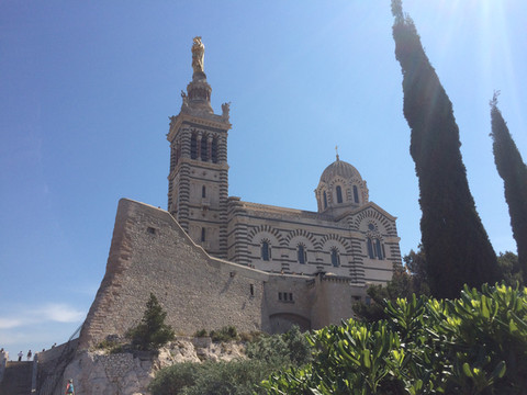 圣母加德大教堂自1864年落成,便是马赛的象征,它建于马赛的制高点154米高的一座山丘上,可穷千里之目,尽揽马赛全城,更能眺望地中海美景,视野蔚为壮观,是游人俯瞰风情的最佳地点。