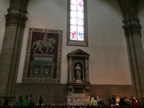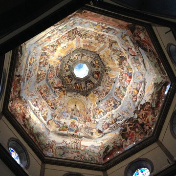 这是一座修建于文艺复兴时期的伟大建筑,因为佛罗伦萨在意大利语中含义就是百花之城,以百花命名的教堂成为佛罗伦萨的城市象征。教堂1295年开建,花了175年时间才最终建成。教堂总高达107m,成为整个城市轮廓线的中心,直径45米的圆型穹顶是继2000年前古罗马之后的又一圆顶杰作,是文艺复兴时期探索精神的标志。