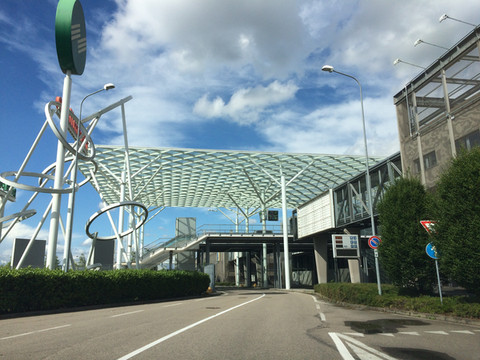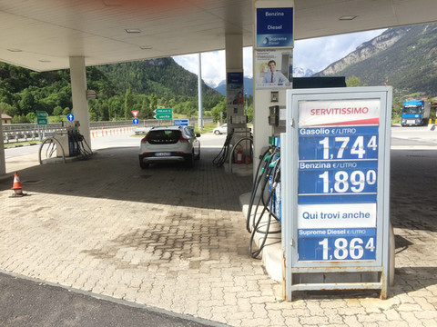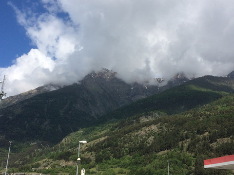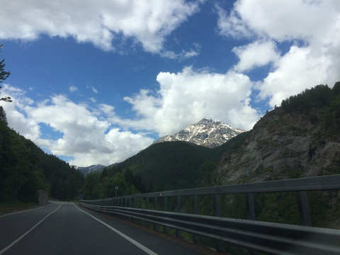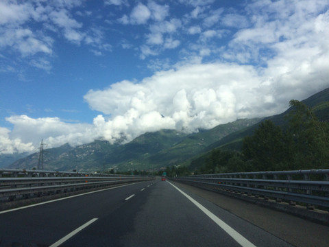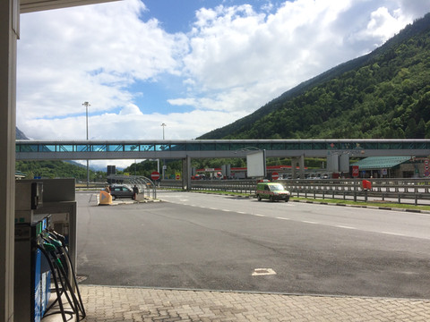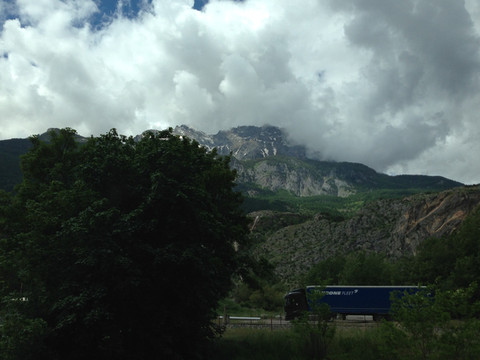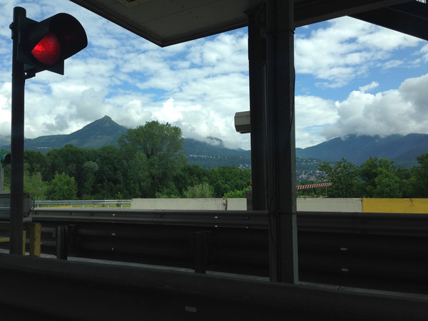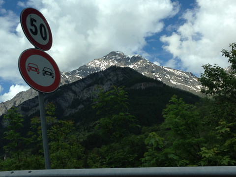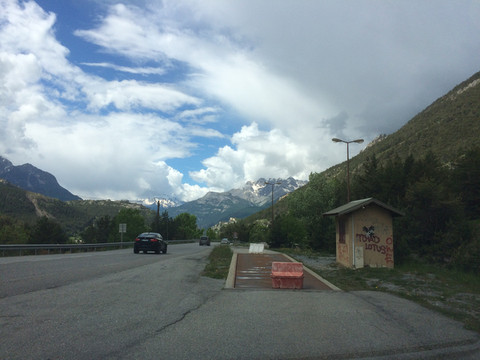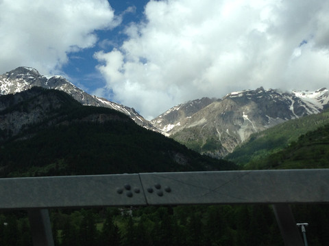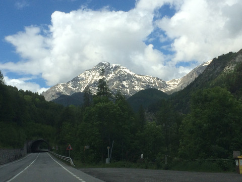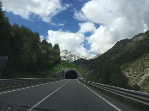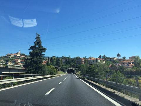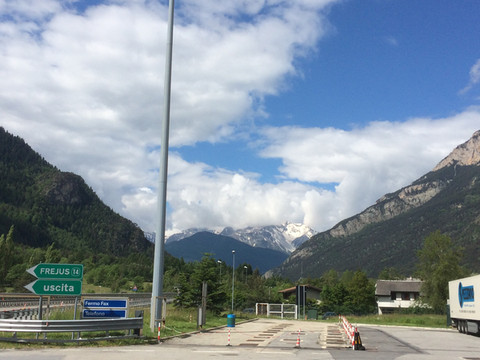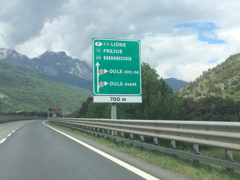 阿尔卑斯山一直延伸到地中海,法国到意大利的高速公路穿过很多隧道,其中有一条隧道出来就是法意边境,这里是直通,不注意发现不了边境上悬挂的标志。