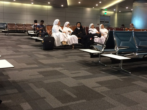 在多哈机场D区登机口候机