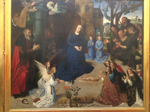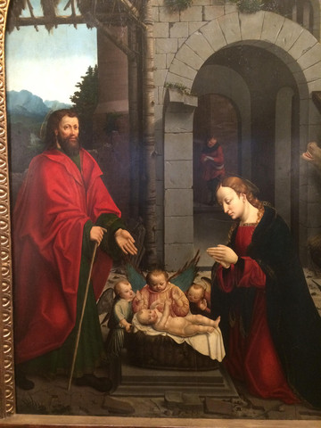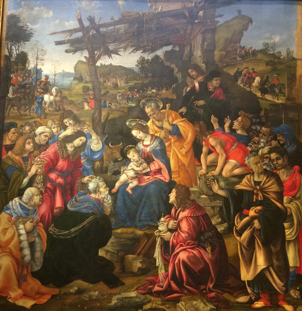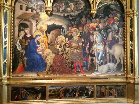 该画表现的是三位圣贤拜访初生的基督和他的母亲玛利亚。