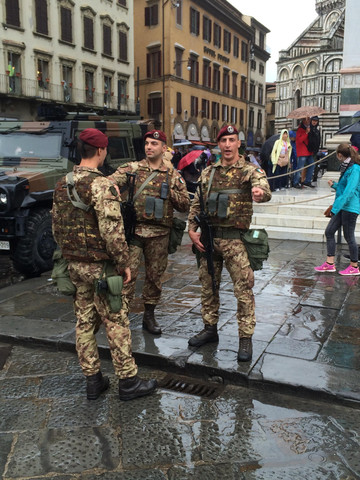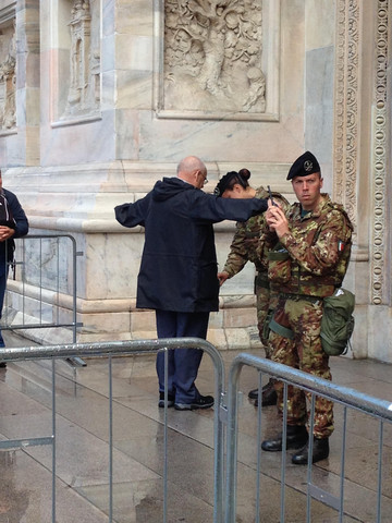 在雨中执勤的士兵,意大利每个重要景点附近都有他们的身影