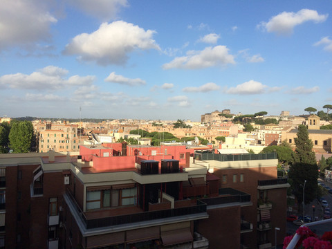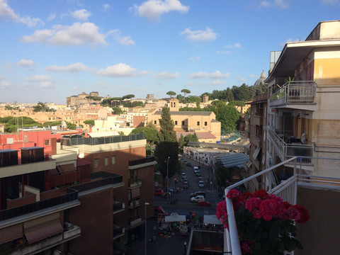 在住宿处的阳台,可以看见梵蒂冈圣彼得大教堂的穹顶,看到罗马延伸到远方