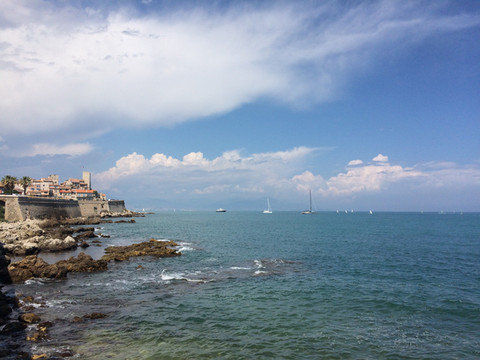 昂蒂布位于戛纳和尼斯之间,是蔚蓝海岸著名的旅游度假区,蓝天白云下帆影点点。这里的古城有2600年历史,古扑的海港、城墙、城堡、堡垒、民宅、街道尽收眼底。