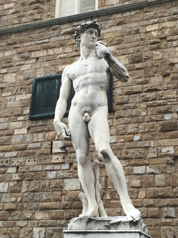 广场上有米开朗基罗的著名雕塑《大卫》复制品,原件在佛罗伦萨美术学院