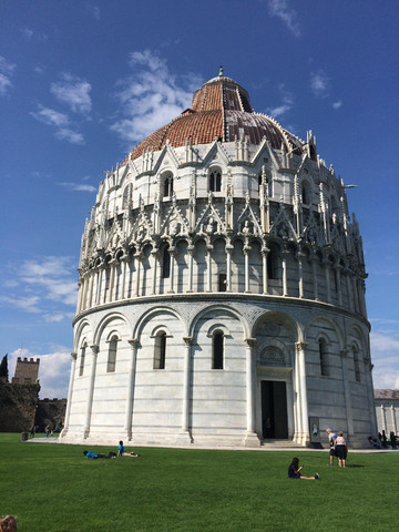 这里是做足了功课,停车地点离斜塔只有几百米的距离,步行很快就到了。比萨斜塔是比萨大教堂的钟楼。