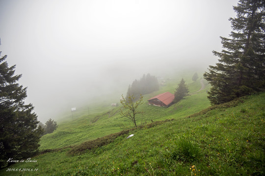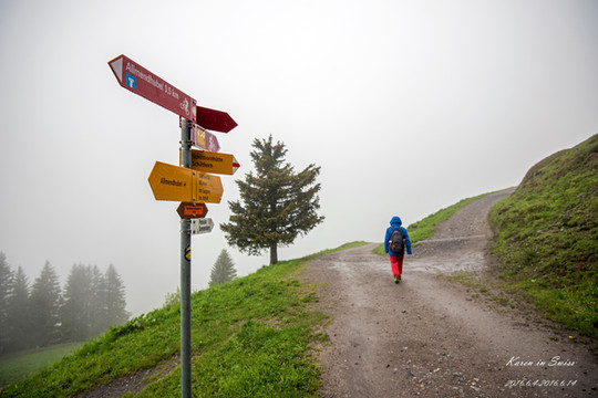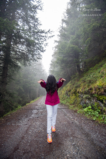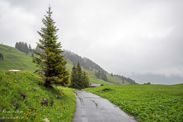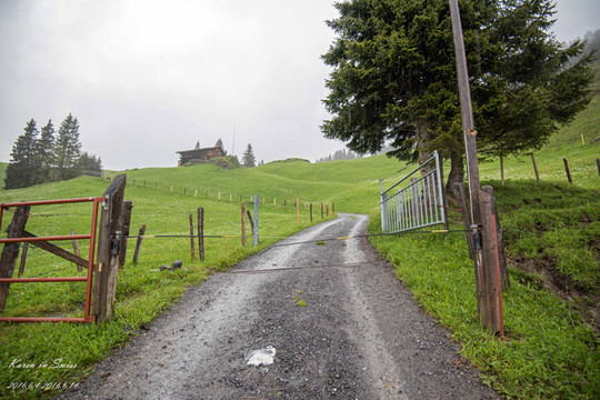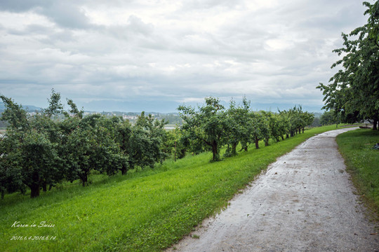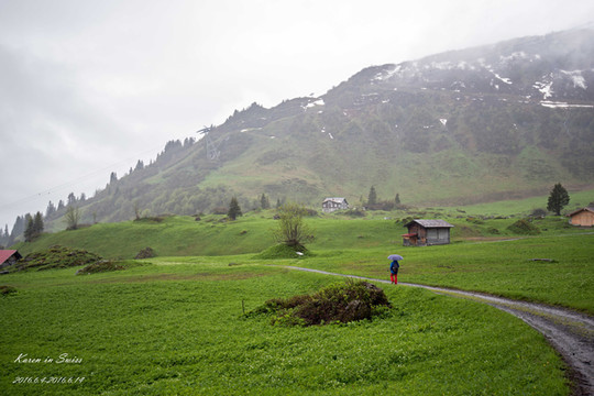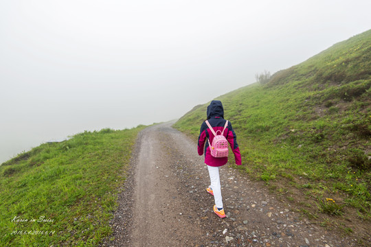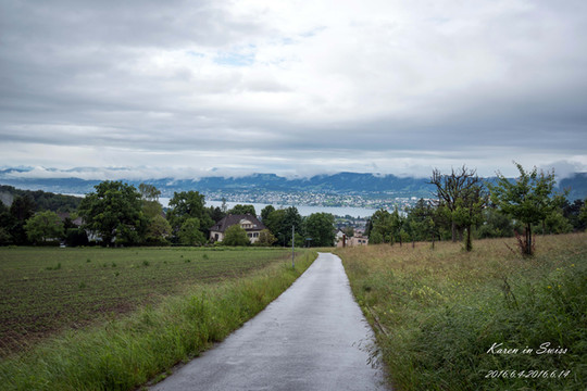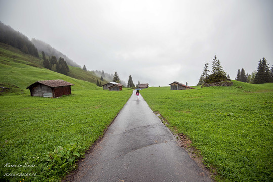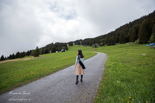 零星小雨下的山间小路,不用打伞,但却空气湿润清新,实在是太舒服。偶尔路过一两群牛呀羊呀,过去喂喂草打打招呼也很有乐趣。这里完全就是我梦幻里的欧洲的田园生活嘛,这一切看上去是那么的恬静、惬意而又那么的浪漫,实在是太向往了。