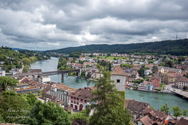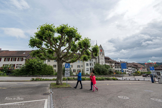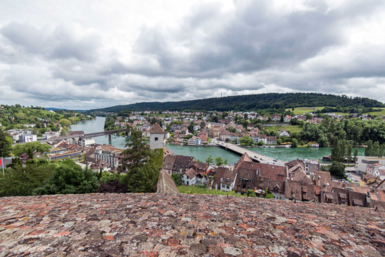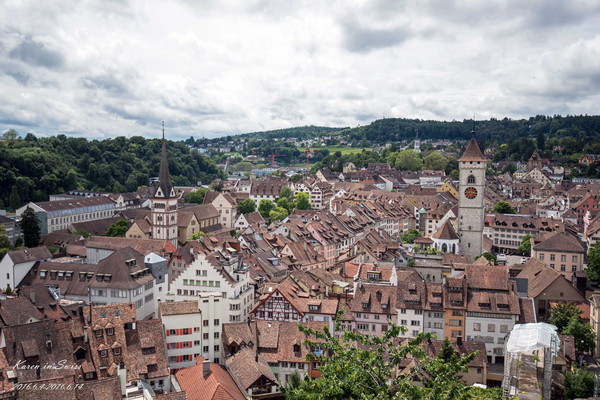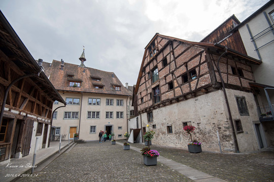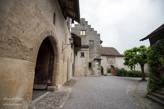 军事城堡里空空如也,除了在观景台俯瞰了一圈之后,我们遍乘车前往不远处的另一个瑞士北方小镇:施泰茵。