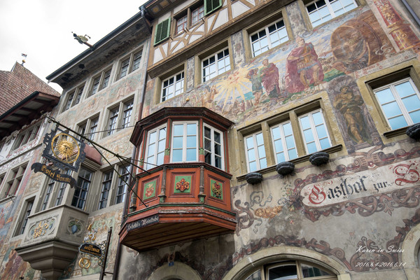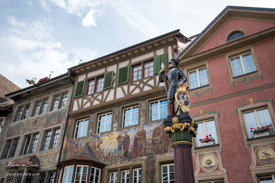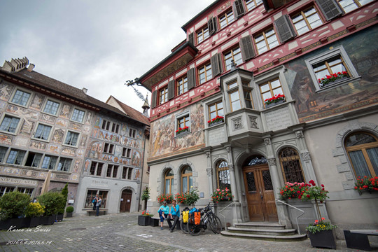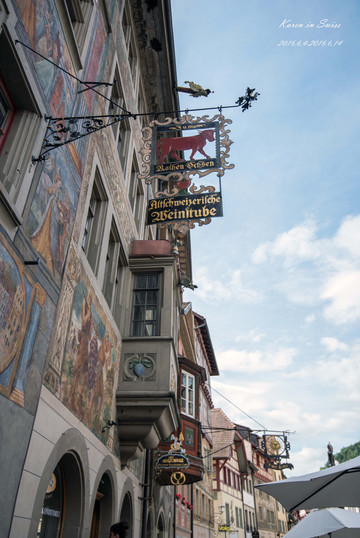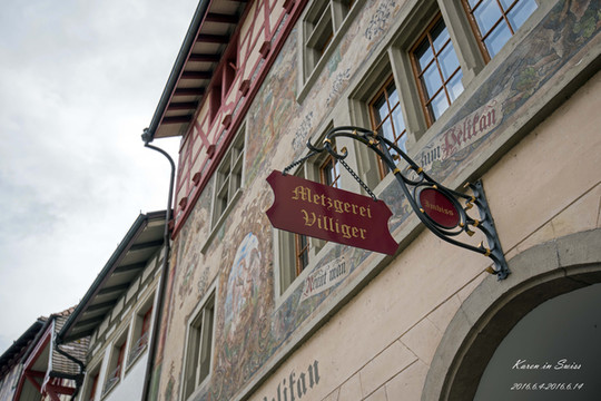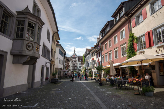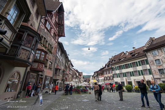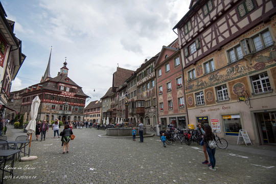 继续开车向前,最终来到了施泰茵古城。这个静卧在莱茵河畔的古城至今已经1001岁了。童话般的施泰茵有着全世界最美丽的中世纪街道,以湿壁画闻名于市。