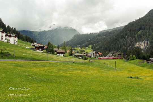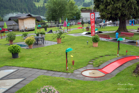 填饱了肚子,看时间才是傍晚,就这样在酒店里一直休息感觉太浪费时间,反正有瑞士通票坐火车免费,不如去另一个美丽小镇格兰德瓦尔德去看看,打一打山脚下的高尔夫也是很不错的。