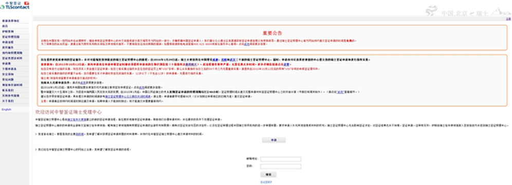 瑞士签证申请中心(中智签证瑞士受理中心)官网: https://cn.tlscontact.com/cnBJS2ch/login.php