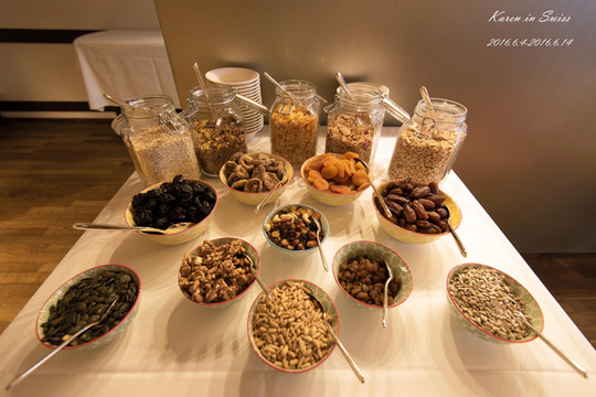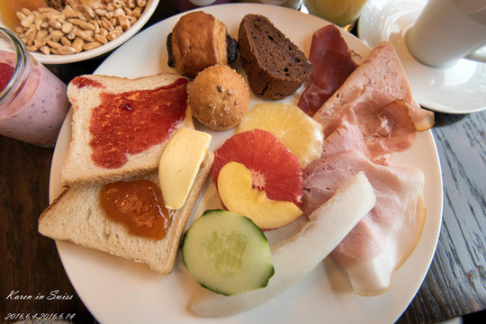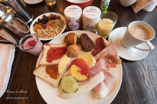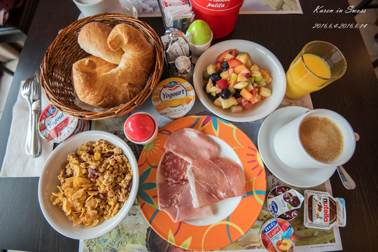 早上醒来第一件事就是看窗外,但是并没有给我们惊喜,虽然雨已停,但还是乌云密布,远处河对岸的苏黎世都看不清。还是在酒店好好吃一顿早餐来的最实惠。
