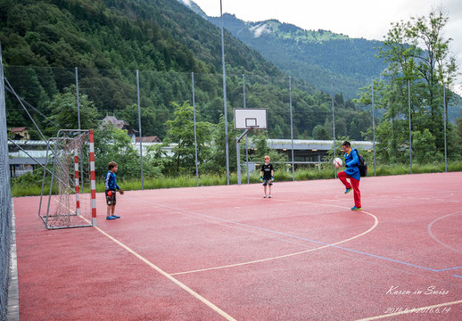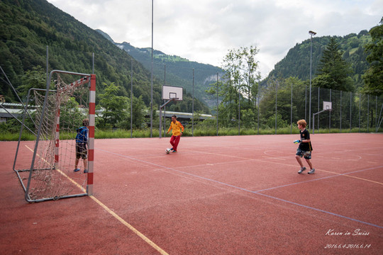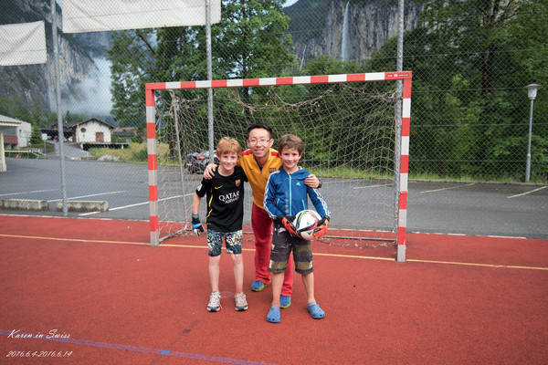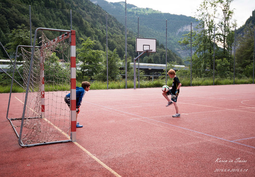 回到小镇,决定从半山腰回家。刚穿过小溪,老公就不见了。已经是第二次转小镇的我,知道半山腰有个足球场,于是不紧不慢的走到那儿,果然已经跟当地的小朋友踢上了,没想到还同是巴塞罗那的球迷。大约也就上小学的孩子,踢技完全不在老公之下,直接对比出了国足的差距!