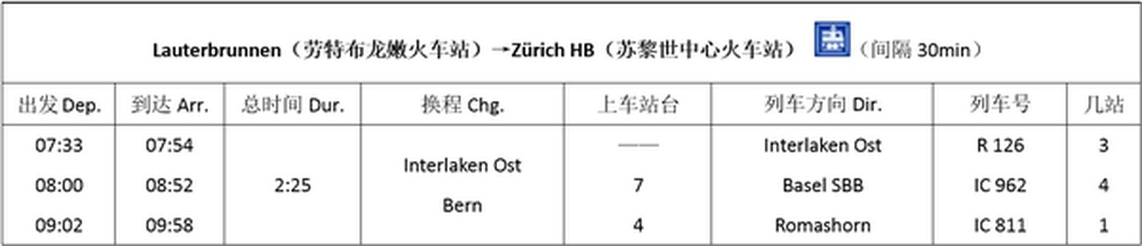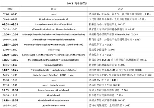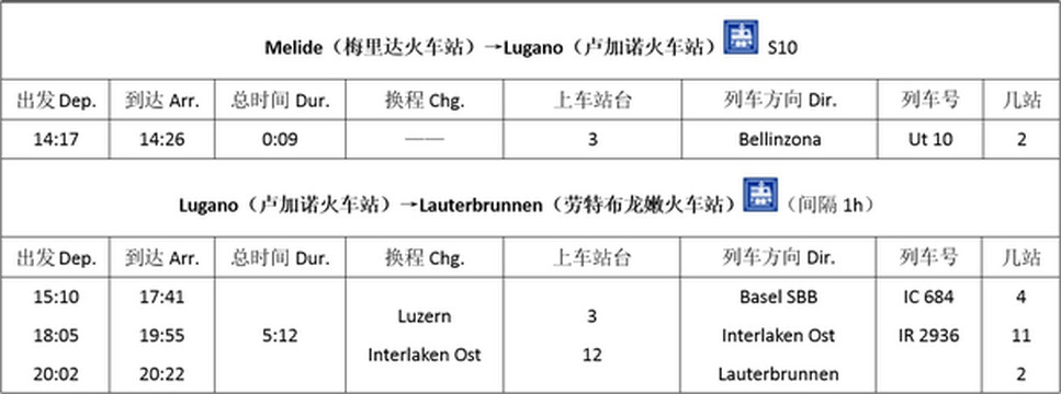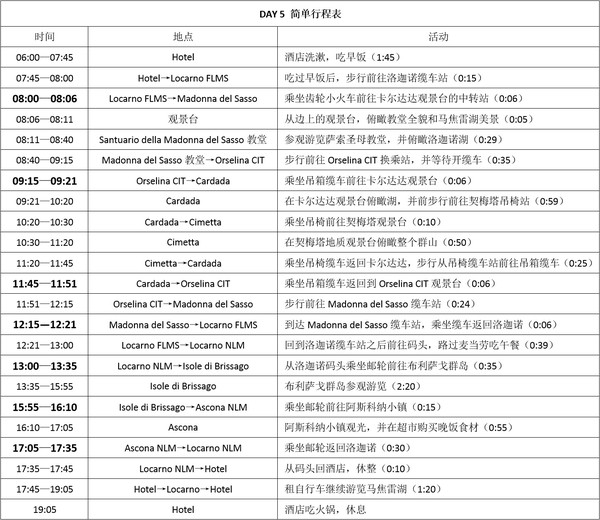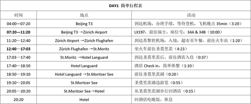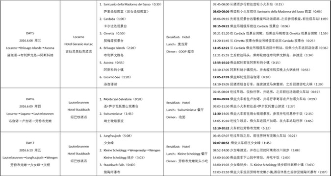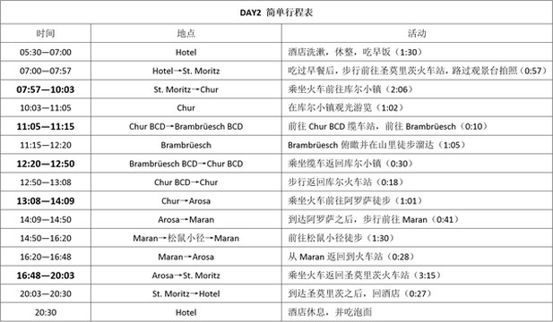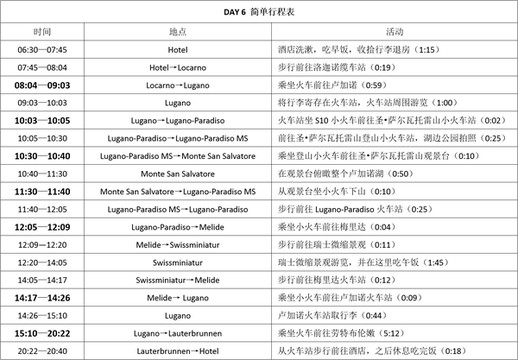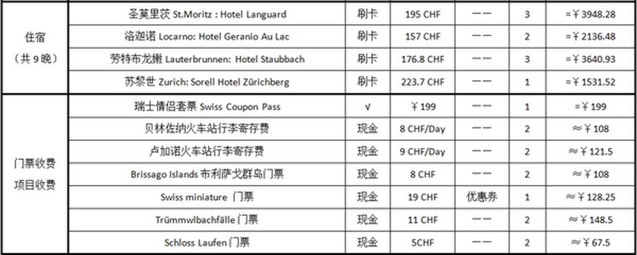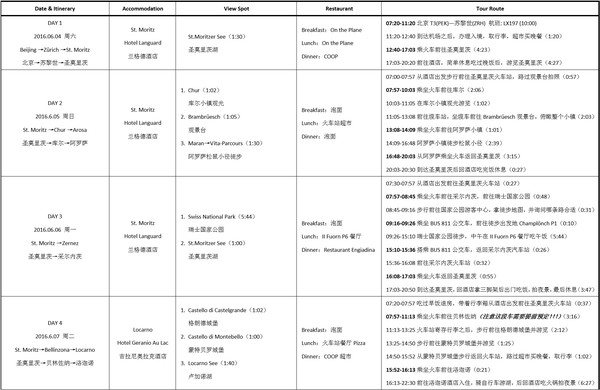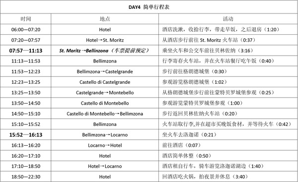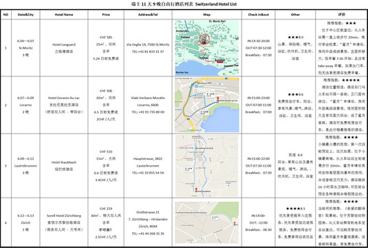 最后我的大概行程:圣莫里茨3晚—洛迦诺2晚—劳特布龙嫩3晚—苏黎世1晚