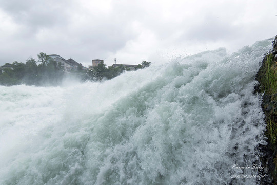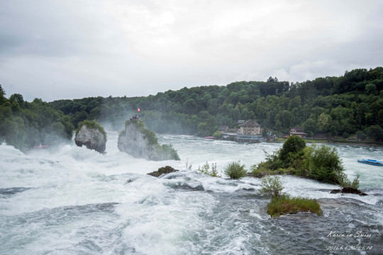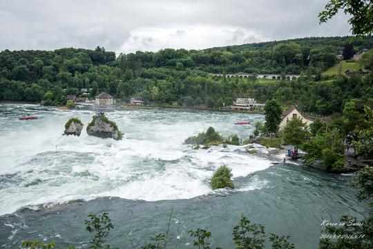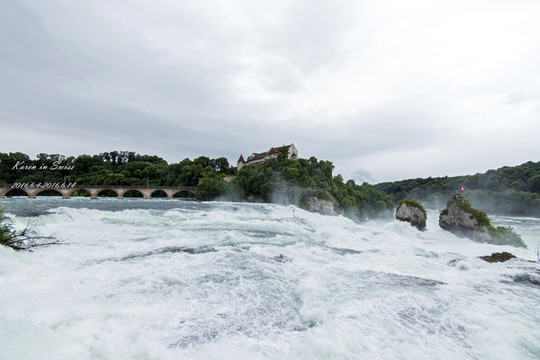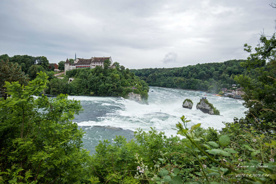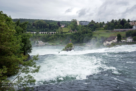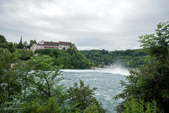 而对于我俩来说,游览莱茵瀑布的最佳方式就是徒步:先在位于瀑布南部的劳芬城堡,在不同高度的观景台近距离观赏,之后沿着瀑布上游的铁路走到河对岸,沿着河边在不同角度的观景台全方位的感受莱茵瀑布的震撼。