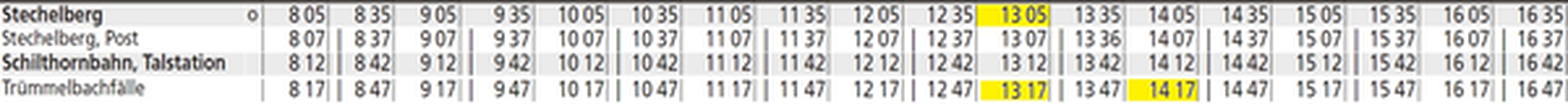 如果体力允许,可以一路顺着小溪走回劳特布龙嫩。但是上一次我们已经体验了这一路的梦幻风景,这一次决定乘坐公交巴士,探索这里的另一奇观:特里默尔巴赫瀑布群。