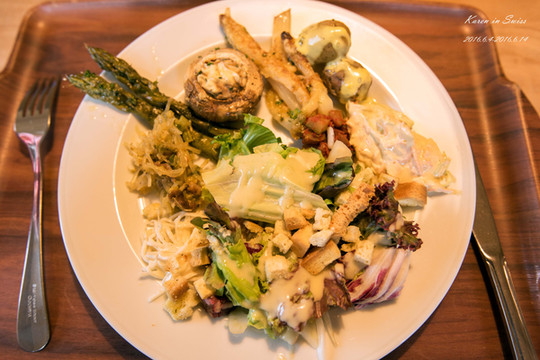 在欧洲餐厅吃饭,主菜都是大鱼大肉,很难吃到清口的蔬菜,而在这里吃的素食自助,算是解救了我这个上火的胃,让我们吃的又舒心又可口,最最关键是便宜!性价比超高!