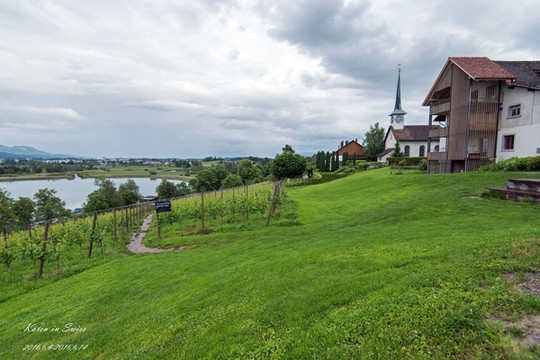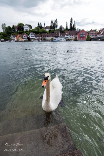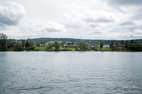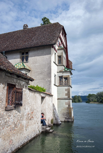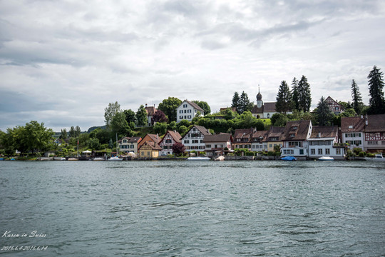 施泰茵在德语中的意思是“莱茵河上的宝石”,而这里也确实对得起这个美丽的名字。还没来到施泰茵古城,就看到莱茵河畔一排排的红房子在绿地碧水的衬托下显得格外耀眼,忍不住停车坐在湖边欣赏美景。