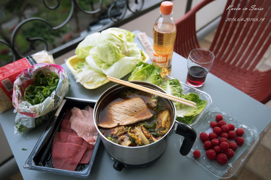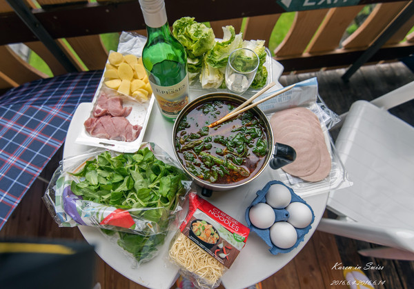 以往我们都是早出晚归,每次到超市的时候都是关着门的,今天终于等到超市开门时间了,所以绝对不能错过这个购买食材的机会。由于今天一直在徒步,中午饭我俩就没吃,所以晚饭一定不能凑合。买了一堆菜和肉还有生鸡蛋,回酒店最后吃一顿丰盛的火锅。
