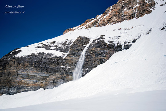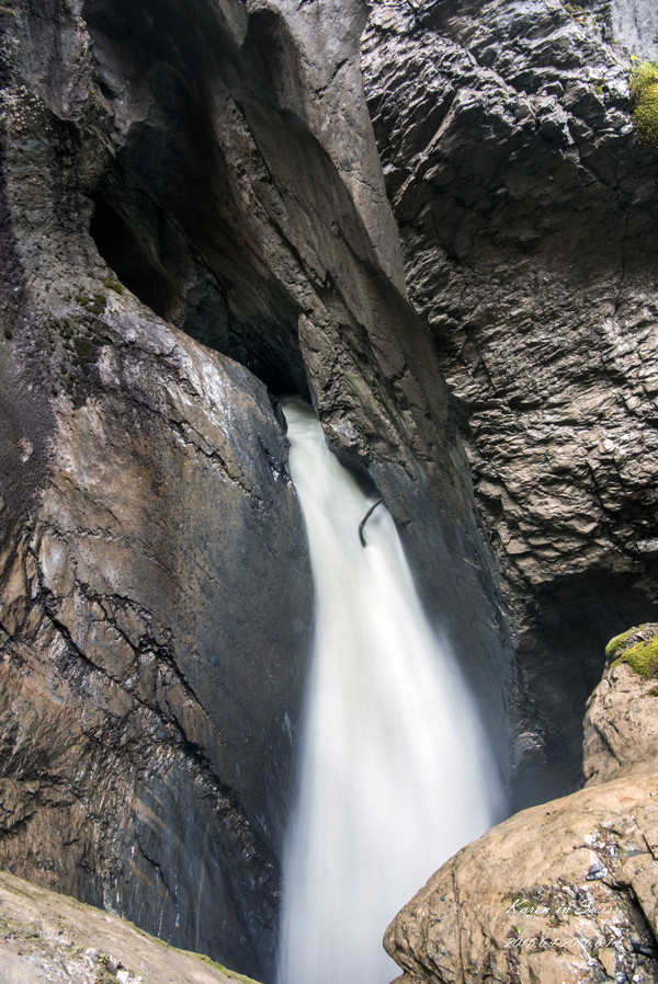 从最高处的瀑布群慢慢往下看。每秒有2万升的水从冰川和积雪流入山谷,由涡流形成幽谷和深潭,水量很大,水流很急,非常壮观,就连我的相机镜头又在最后的时候被水花全部溅湿。