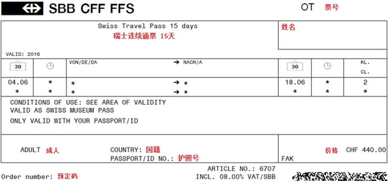 本来想继续在欧铁中国的官网上直接购买,后来发现在他家的官方淘宝店上可以直接购买电子票,购买之后打印出来就可以了,没有4欧出票费,还比官网上每人便宜了200多,最重要的是不怕丢票了。于是最终在淘宝店里购买了瑞士通票。只不过这个电子票购买之后不能退换。购买通票的时候需要提供出行日期的,出票之后系统直接激活,不用再到瑞士之后自行激活了,省了不少时间。