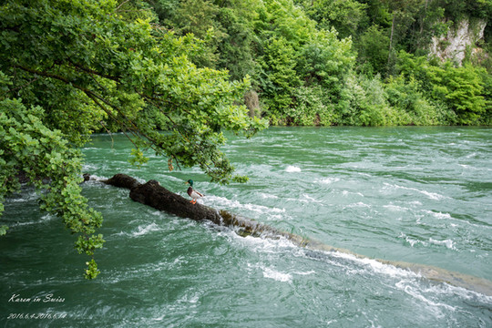 一路上,看到有的人在这里远观瀑布,喂喂野鸭,静坐发呆;也有人跟我们一样一路走过来,感受温馨宁静,或有惊喜,或有感叹;而有的人更喜欢冒险刺激,乘坐游轮体验冲进瀑布的荡气回肠与惊心动魄。其实无论采用什么样的方式,只有身处其中,才会明白莱茵瀑布的无敌魅力。