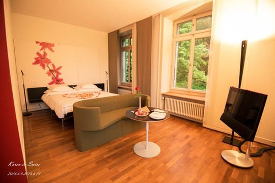 其实这个酒店还是他推荐给我的,是《亲爱的,翻译官》的拍摄地,当时黄先生担任剧组的瑞士方面的翻译与招待,就觉得这酒店超级漂亮,性价比还高。亲眼所见,确实如此。而且虽然在半山腰,但是酒店门口不远处就是有轨电车站,能直接到达苏黎世中央火车站。