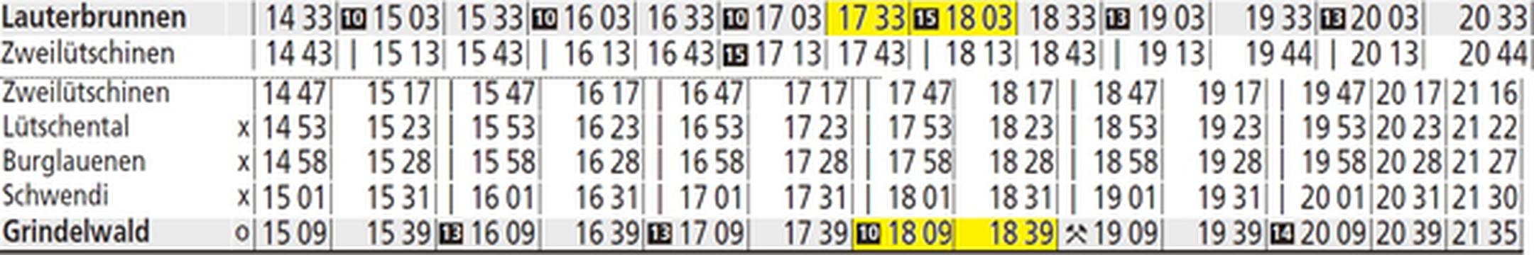 没想到劳特布龙嫩的火车站都有电子屏了,可以一目了然的看到哪条徒步线路开放,哪条没开放