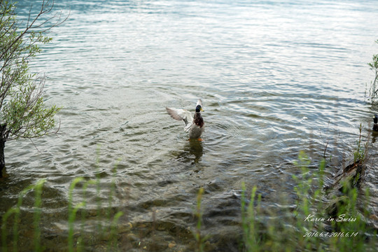 远处的天鹅游过来跟我打招呼,其实应该是在管我要吃的;不远处一对儿老夫妇坐在长凳上欣赏着湖光山色,看着是那么幸福惬意,不禁打心底里羡慕,在这个只有电影里才能看到的画面里,主角要是我该有多好,想象如今还要延时退休…真是生无可恋了!