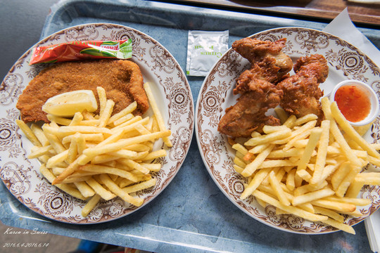在这里吃饭价格自然也要高一些,不符合我“穷游”的态度,于是根据黄先生推荐来到了边上的快餐厅,一人买一个套餐,解决了午饭。