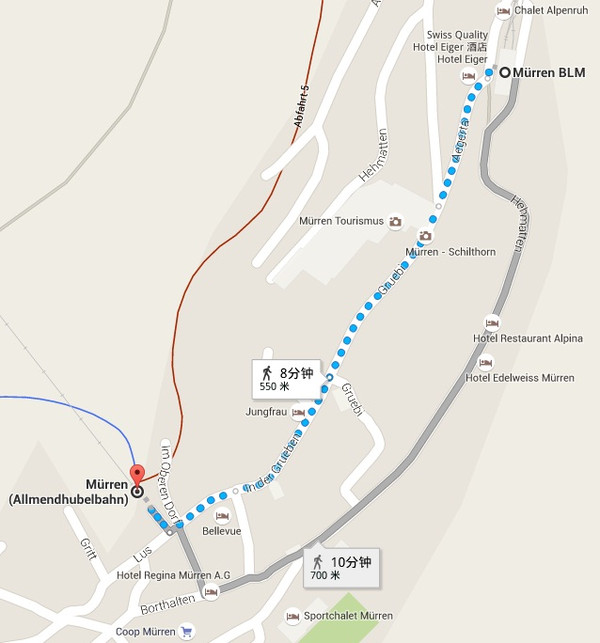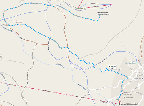鲜花小径是Allmendhube→Blumental→Mürren,沿途经过Blumental鲜花谷,Blumental Panorama和ChildrenAdventure Trail,由鲜花谷徒步回到米伦。是一条比较容易走的路线,所需时间约为1-1.5小时。