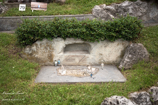 乘坐山洞里的电梯来到山的中层,出来之后顺着景点地图,慢慢往上爬。
