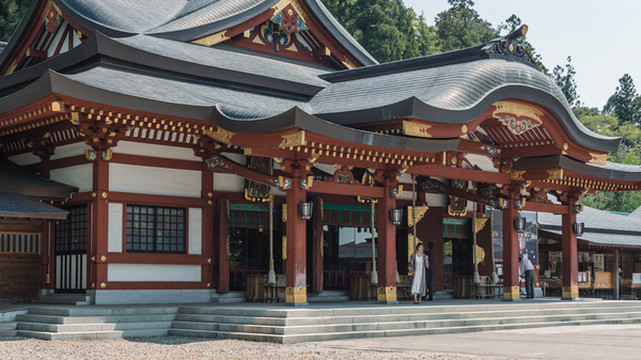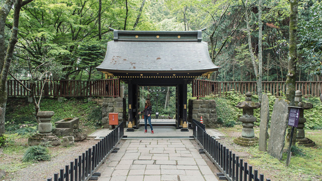 正殿门口是这样哒~此处应有自拍~瑞凤殿是江户时代初期,领先获得发展的仙台藩第一代藩主伊达正宗安葬的陵庙。第二代藩主伊达忠宗根据伊达政宗的遗命于1637年在请野山南边的经峰创建陵庙,命名为瑞凤殿。之后第二代忠宗、第三代纲宗也葬于此,建造了感仙殿、善应殿。瑞凤殿是由正殿、拜殿、唐风大门、御供所、涅槃门构成的桃山样式的豪华陵庙建筑,1945年在战火中烧毁,所以现在的岭庙是1979年再建而成。2001年还进行了改建,恢复了创建当时的样子。感仙殿和善应殿也同在战火中烧毁,于1985年重建。瑞凤殿是坐落在杉木树丛中的庄严华丽的陵庙,占地内的资料馆对随葬品等进行了展出和解说。