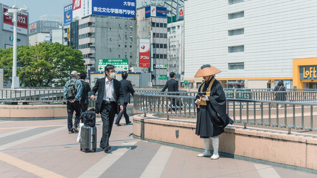 在仙台站上偶遇的一幕,一条道路,两种人生。