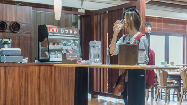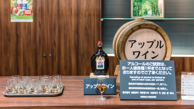 参观完酒厂所有的设施之后,导览就把我们带到免费试喝专区啦,随便喝,不过自驾来的人就没口福啦,日本严格规定酒后不能驾车,这还包括自行车……