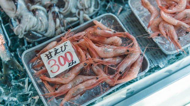 还有300日元一大盒的甜虾……